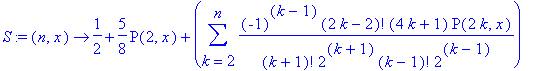 > S:=(n,x)->1/2+5/8*P(2,x)+